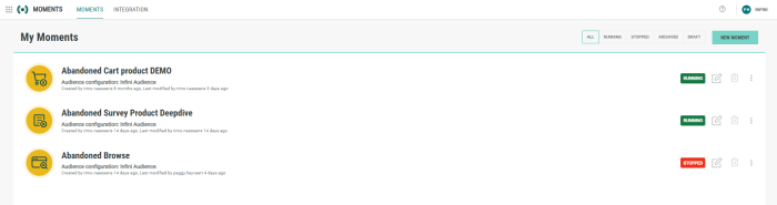 At first, we focused on a series of Abandonment Moments. Each of these Moments will be able to trigger a Cheetah Digital journey. Implementing Abandonment Moments allows marketers to reclaim lost sales by re-engaging customers with target reminders, ultimately boosting conversion rates and revenue.