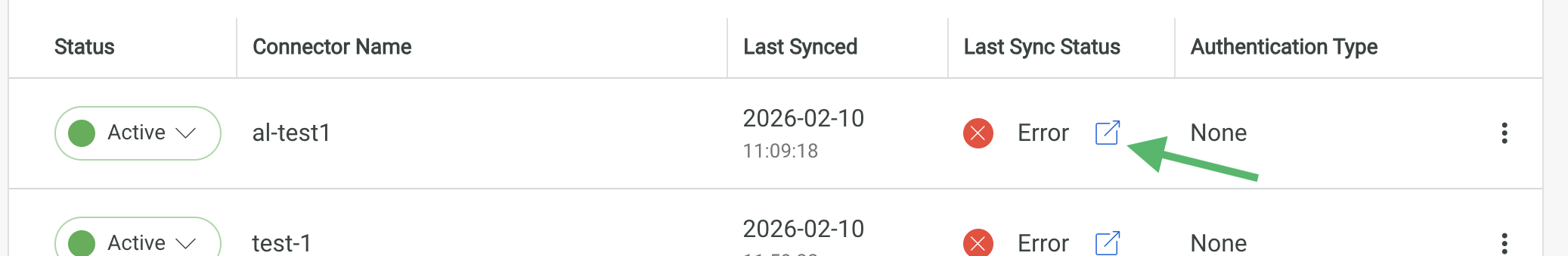 From the home page, click the Open icon next to the figure in the Last Sync Status column.