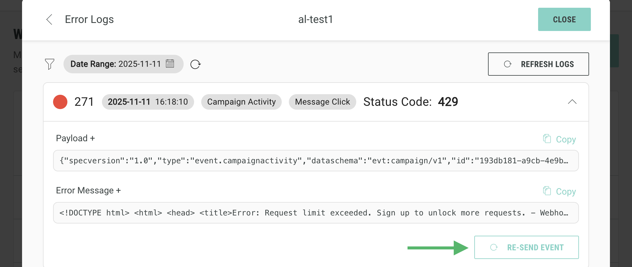 Alternatively, individual failed events can be manually retried when viewing the error logs.