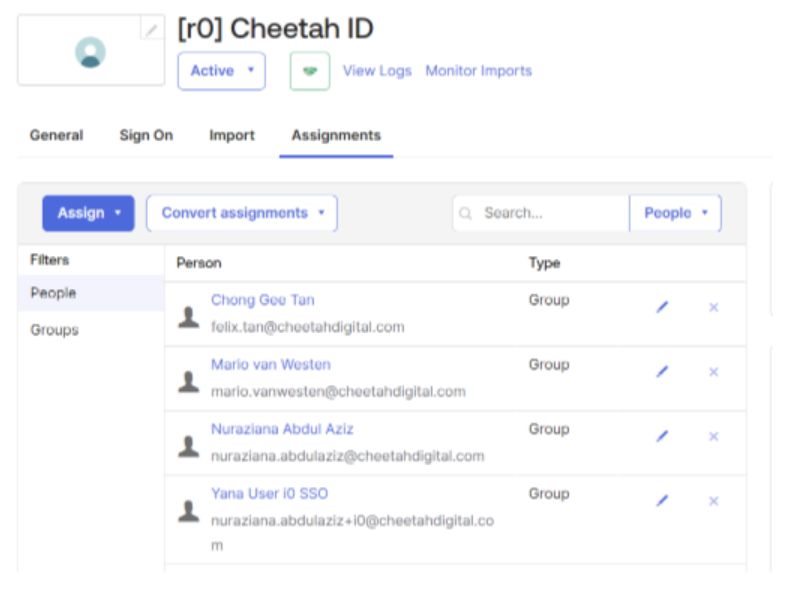 Click Assign, and select whether to assign users or groups into this application.
