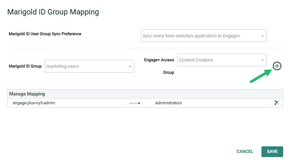 To map a Marigold ID User Group to an Engage+ Access Group: