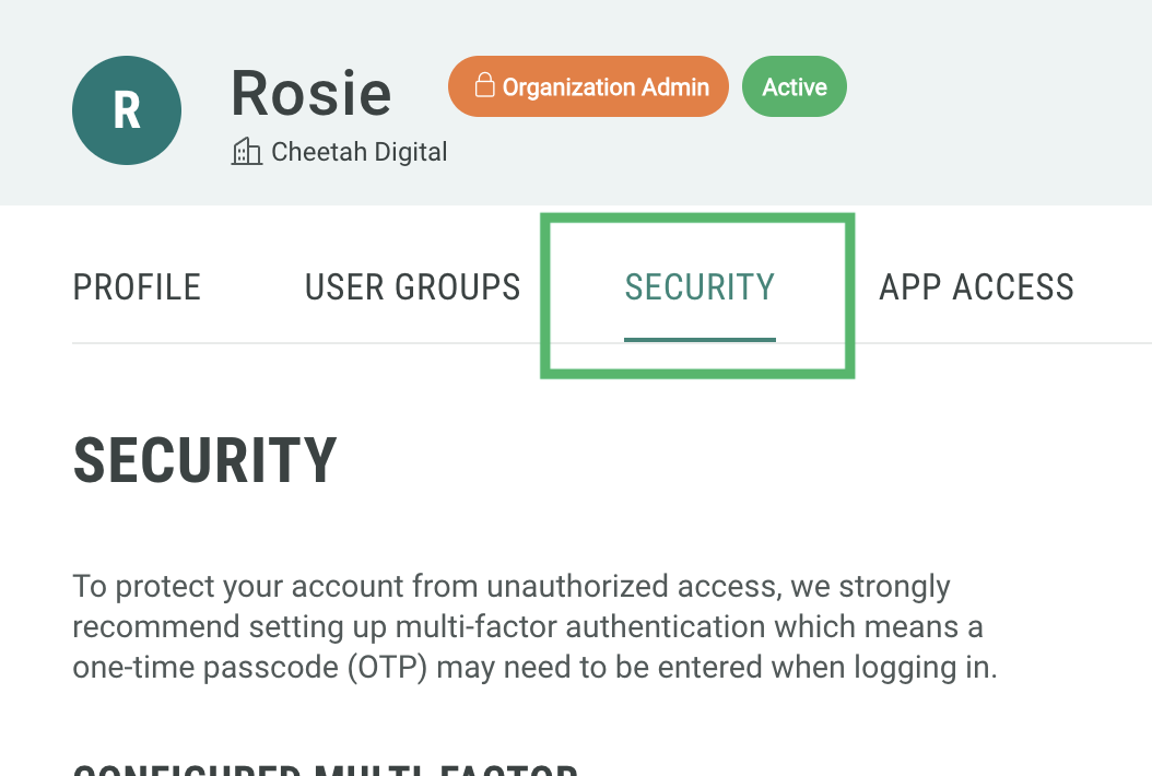Log into the Zeta Login User Workspace. The Profile tab is selected by default.