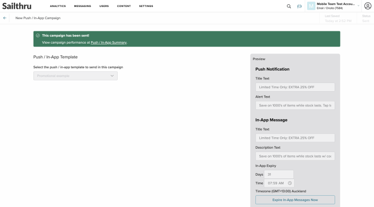 Push / In-App Campaigns sent on Sailthru’s core platform can now be expired at the press of a button, even prior to the scheduled expiration date set by a user. Check out documentation here.