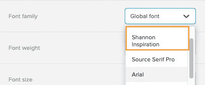 - Depending on the type of block selected, you'll find custom fonts in the following areas: