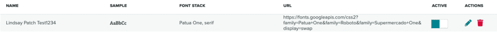 | Actions | The tools to edit or delete a font entry:
