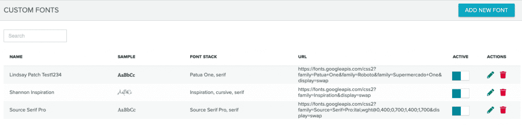 From the Custom Fonts page, locate the font you wish to edit.- Select the pencil icon