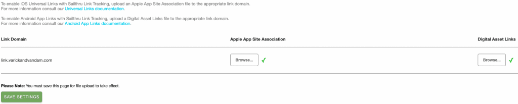 If you're ready to go, you can upload these files through the Mobile App Links settings page in my.sailthru.com. If you're looking for details on these files, continue reading.