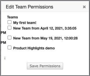 - Select the Team or Teams you want to assign the template from the Edit Team Permissions modal.