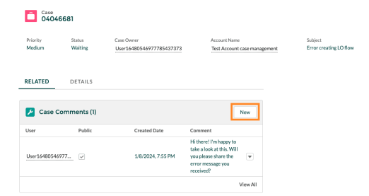- Add and save any updates you wish to add. You’ll receive an email notification when the support team has replied to your case in the portal.