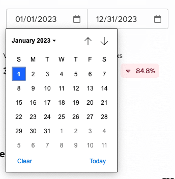 For example in July 2023 the date range 'Previous month' will display numerical data of your content performed in June 2023, and the percentage data will compare how your content performed in June 2023 with how it performed in May 2023. Current day, Week to date, Month to date, and Year to date will compare against the previous complete date range respectively.