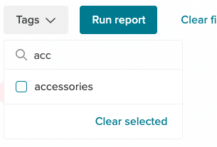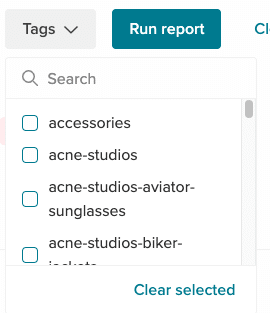 We recommend typing to search for the desired tags. Select your tags and close the Tag filter. The number of selected tags shows in the filter.