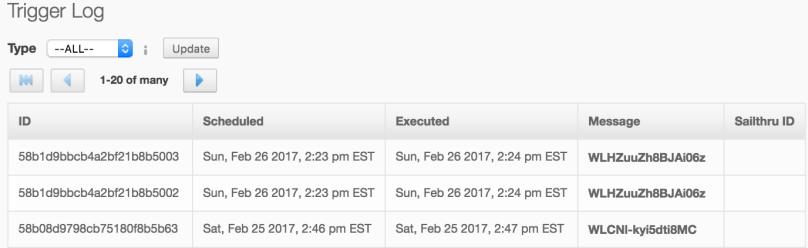 - Schedule Send Log - Provides all currently scheduled triggered messages.
