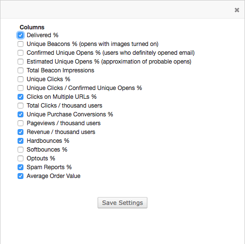 Delivered | Percentage of emails sent that were sent, minus any hardbounces or softbounces. |