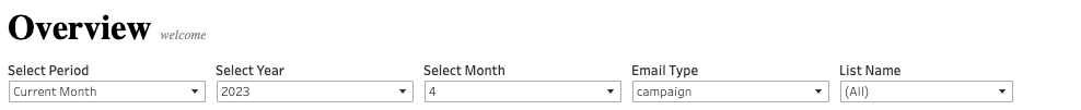 Each dashboard allows data filtering, depending on how the data is presented, so you can see just the data you wish to see. For example, these are the filters available in the Executive Dashboard.