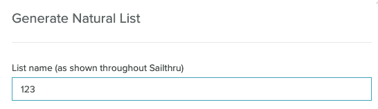 - In the Generate Natural List modal, enter the List name of the list you wish to merge into (the list called 123).