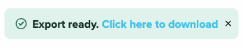 - When your export is ready, you'll see a message pop up at the bottom of the screen. Select the link to begin your download.