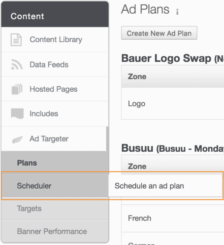 - From the Create an Ad Plan Schedule home page, select Ad Targeter Scheduler.