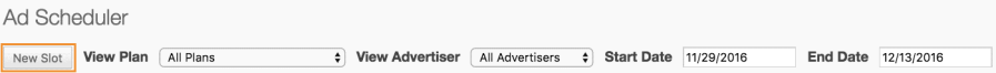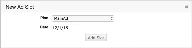 Select your ad plan and set the date in the New Ad Slot dialog box.