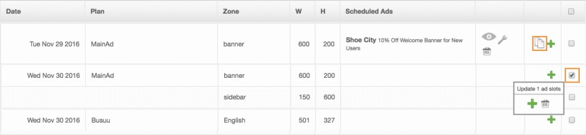 - Click all the checkboxes of the rows that you want to copy the ad TO.