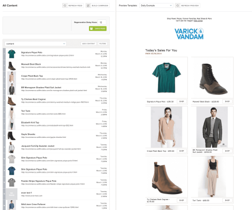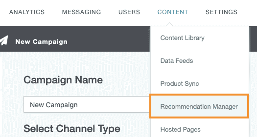 Once you have created a data feed, customize its content in Recommendations to prepare and preview emails.