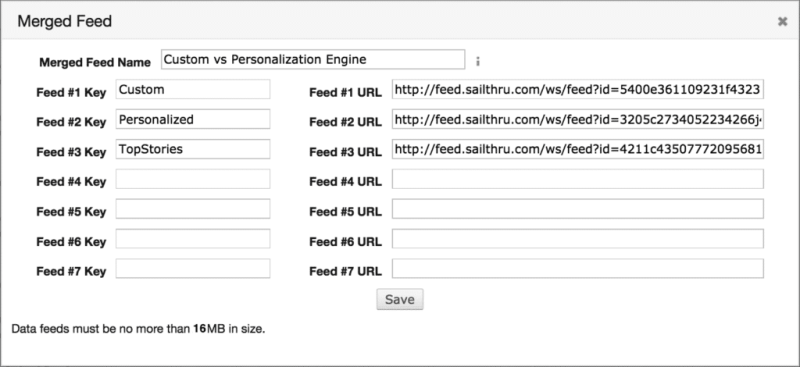 - Each feed must be less than 16MB. Blank spaces in feeds unnecessarily increase the size of data feeds. We recommend minifying your data feeds where possible.