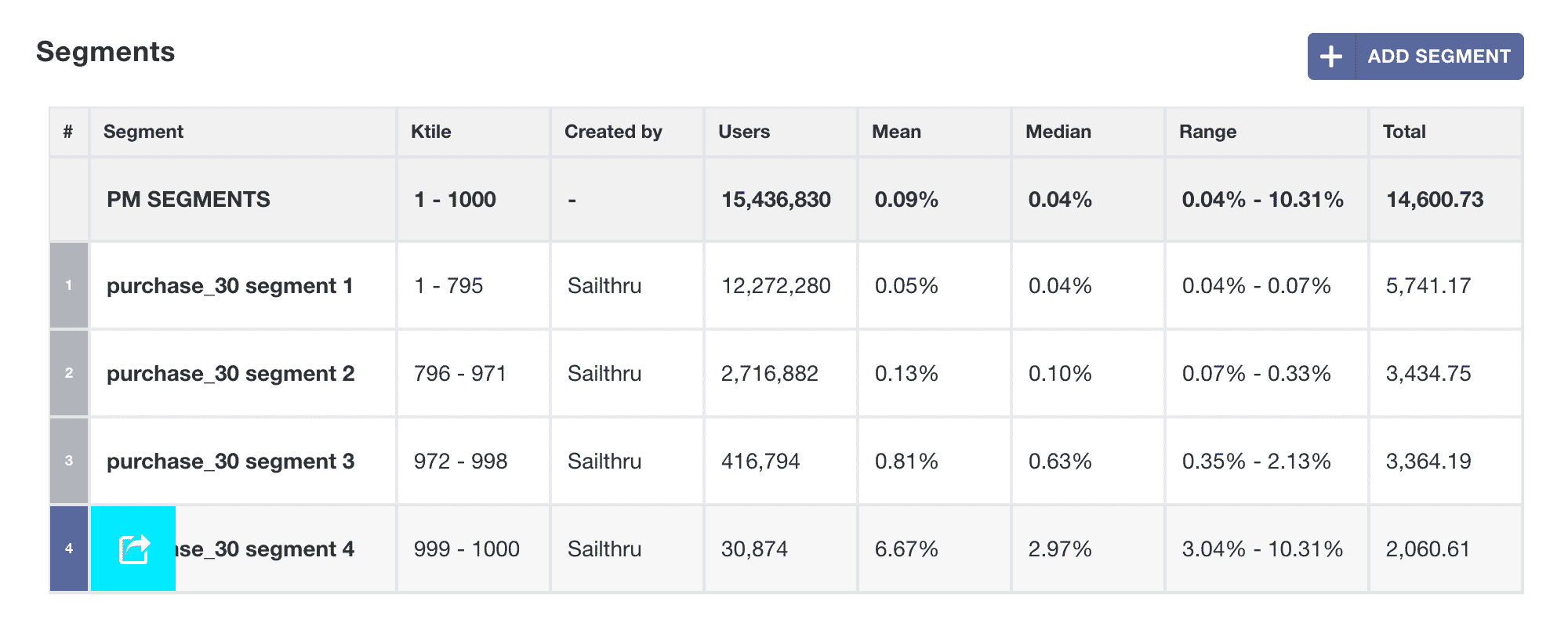 You can use these pre-built segments or use your own custom range of predicted values to create a custom segment.