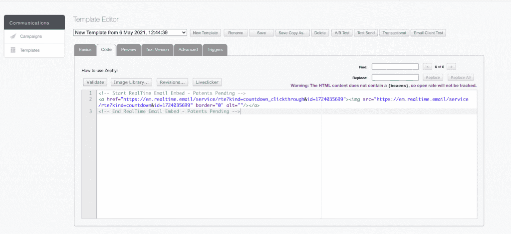 The Real-time personalization powered by Zeta Liveclicker integration is a seamless way to insert Liveclicker elements while crafting email templates.
