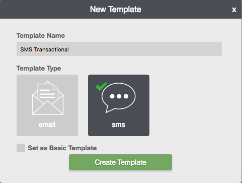When you use the Send API to send a message with a template type configured for SMS, Sailthru will automatically check the user profile for a mobile number, send an SMS if the user has one stored as a key, and fall back to a normal email if the key does not exist. To create an SMS template navigate to Communications > Templates > New Template and choose SMS as the template type.
