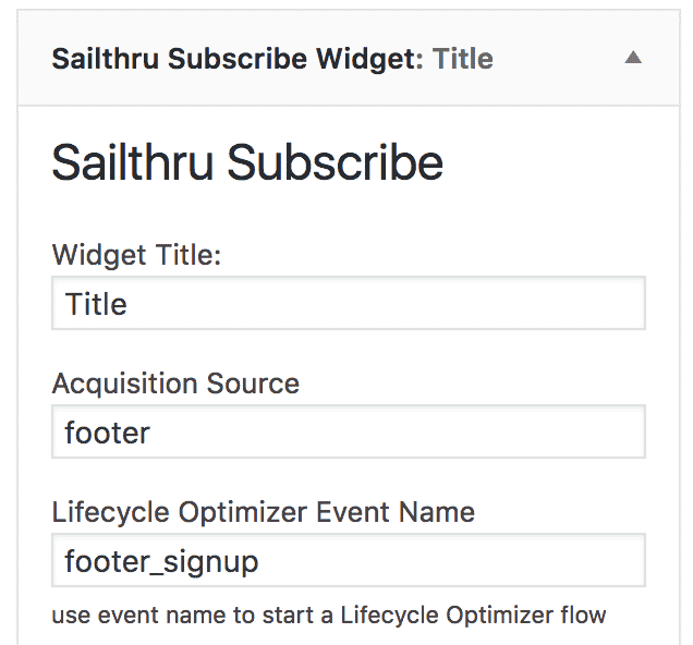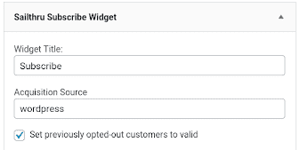 - Open your Widgets settings in your WordPress Admin dashboard and locate your Sailthru Subscribe widget.