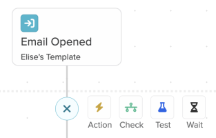 - Merging is available after you configure your Check branches. Hover over the icon at the end of the step and select Join.