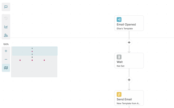 in the top left corner of the flow Builder. Click to open the map. Select one of the shapes to navigate to that section of the flow. The section you're viewing is highlighted with a blue rectangle.