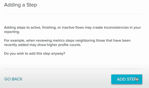 Note: If you wish to insert additional steps into your flow, select the node