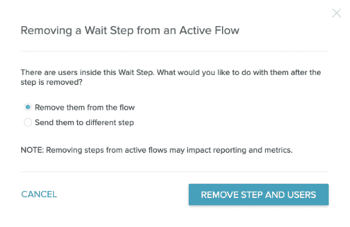 Note: If there are no users in the Wait step, it will be deleted without the warning modal appearing.