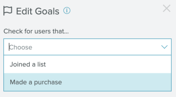 - Select one of the two options in the drop-down menu, List Joined or Purchase Made: