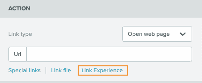 - Select Link Experience in the Action section of the Content Properties panel. This opens the Zeta Grow modal.