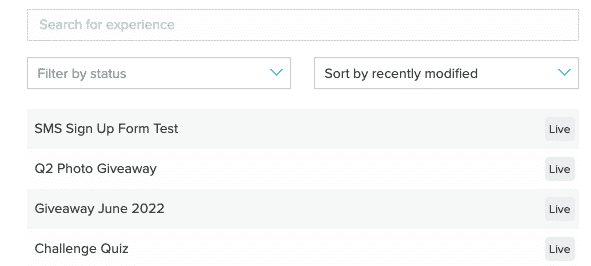 - Filter - Limit which experiences you see. You can view only live experiences or only scheduled experiences.