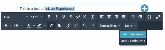 Use Zeta Grow in your messaging through Email Composer templates. Link your experience to the text of your messaging or to a button element. Start with a new template or add an experience to an existing template.Link to Message Text