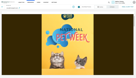 If you wish to see how your message might display in a variety of email clients, select the Email Client Test button next to the environment toggle.