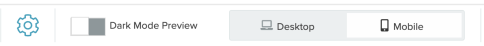 In the preview screen, select the Dark Mode Preview toggle between the Settings gear and the Desktop/Mobile selector.