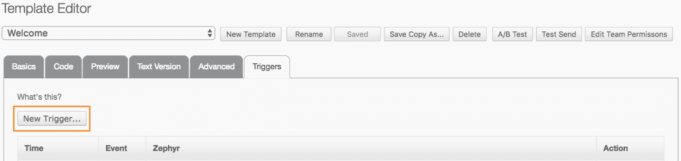 Template triggers are one way to create a Triggered message send. Triggers automatically execute events in response to certain actions at a given time. When a subscriber opens, clicks, or makes a purchase from the selected message, the trigger executes and a follow-up message sends.