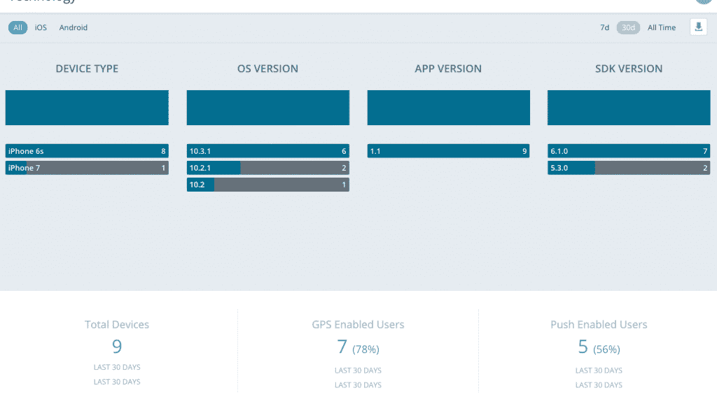 - Technology - Your users' device types, OS versions, app versions, and Mobile SDK versions.