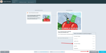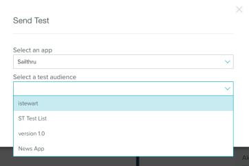 In the Sailthru UI, Test Audiences are available in the Messaging section when one is editing a Push/In App Template.