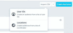 - Click Import CSV and choose the file you will use to create a new audience. Note: the first column for each row should be a user_id. See the By CSV section below for more details.