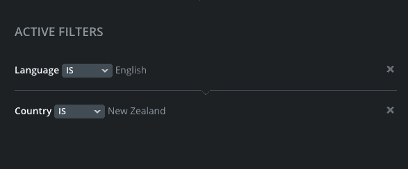 - When you select filters for your audience, these will be listed under Active Filters on the right side of the screen.
