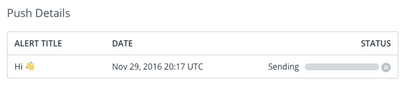 When your push is paused, you will see a progress bar to indicate how many pushes have been sent so far. To resume sending, simply click the play button and the status will change to Sending.