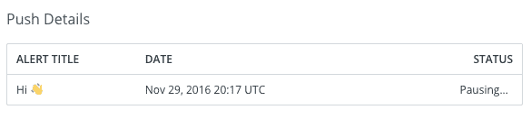 Due to the speed of our platform, pausing can only be effective with audiences of at least 100,000 devices. If you want to limit the rate at which notifications are sent, refer to Throttling Push Notifications.