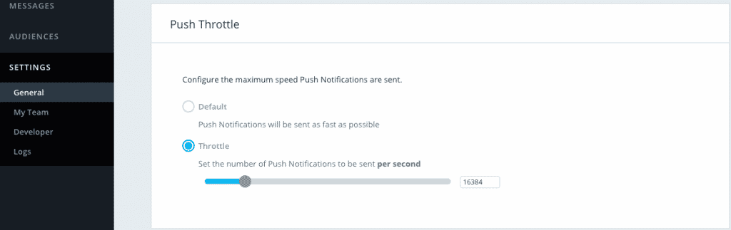 Our platform is optimized to send notifications in the fastest way possible. When you use throttling, you can specify a value indicating the number of pushes you want to send per second.